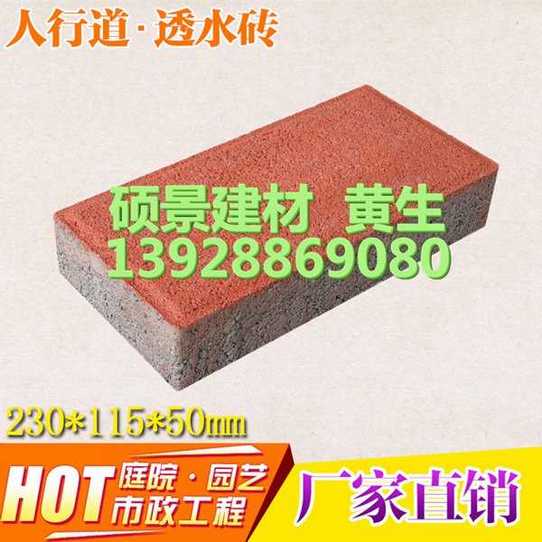 如何辨別透水磚質(zhì)量: 顧名思義,所謂的透水磚,關(guān)鍵在于“透水”,透水性越好,則質(zhì)量越好,好的透水磚能夠解決城市地表硬化,營造高質(zhì)量的自然生活環(huán)境,維護(hù)城市生態(tài)平衡而隆重誕生的世紀(jì)環(huán)保建材新產(chǎn)品。透水磚具有保持地面的透水性、保濕性,防滑、高強(qiáng)度、抗寒、耐風(fēng)化、降噪、吸 音等特點(diǎn)。?
